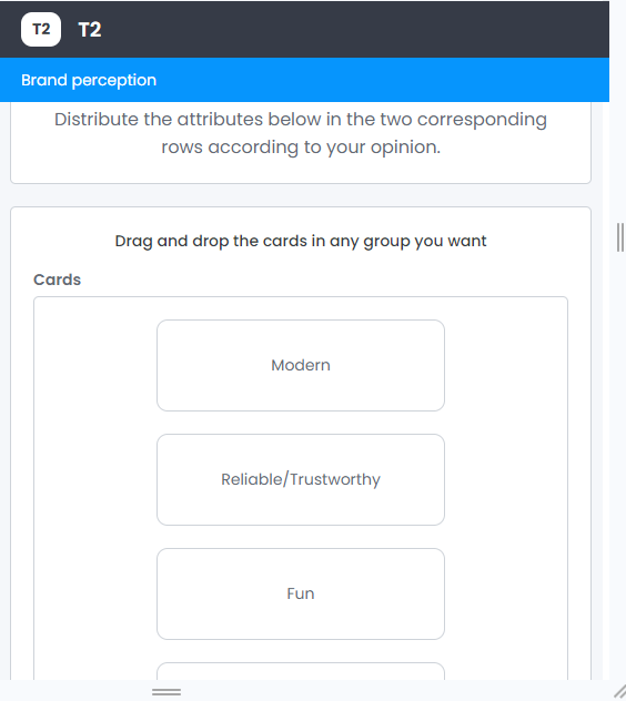 Drag and drop is a type of task in which items are sorted into groups in order of preference using drag and drop or point and click movements.