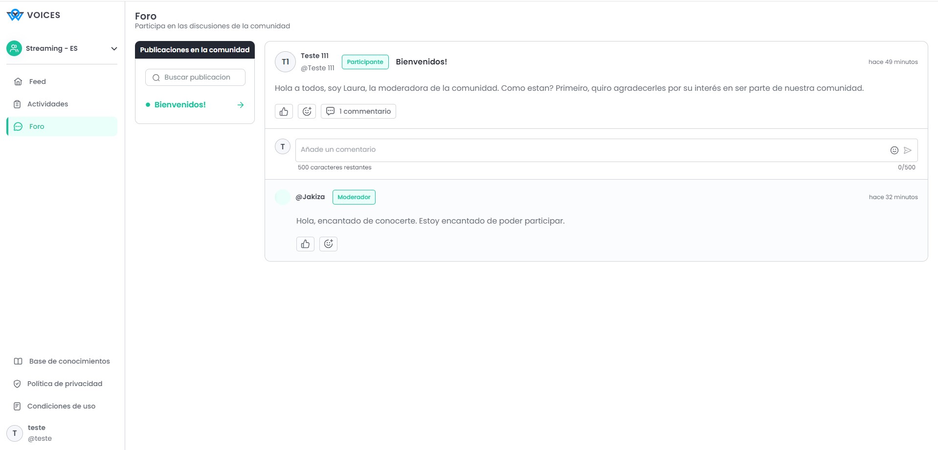 Hay cuatro tipos de acceso diferentes en OW Voices: Administrador, Moderador, Observador y Participante. Cada acceso tiene diferentes objetivos y funcionalidades dentro de la Comunidad. A continuación, podrá comprender mejor las funciones del Participante.