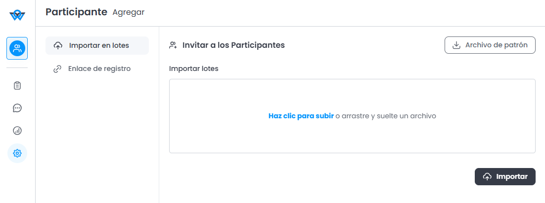 La importación por lote es el método recomendado cuando es necesario invitar a un gran número de participantes al mismo tiempo.