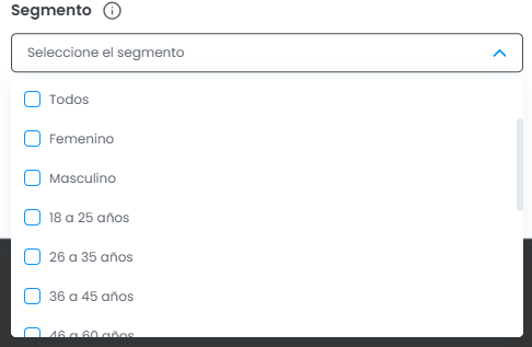 Después del nombre de cada segmento habrá un número entre corchetes [ ], que es el identificador del segmento en la plataforma. Este número no debe ser modificado.