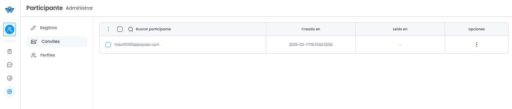- Creado en: Fecha y hora en que se envió el correo electrónico de invitación al participante.