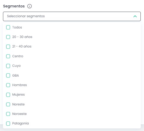 Recomendación: Si tu actividad debe estar disponible para todos los participantes, no olvides seleccionar la opción "Todos" en la lista de segmentos. Esto garantizará que la información de segmentación esté presente en la base de datos del estudio.