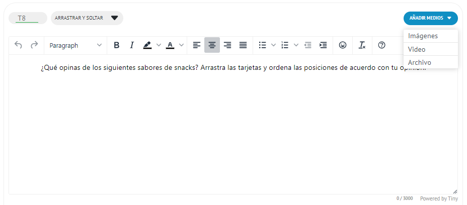 2. Use el cuadro de texto para escribir la declaración de la pregunta, las instrucciones y otra información que considere necesaria. Ajuste el formato del texto utilizando iconos (negrita, cursiva, colores de fondo, colores de texto, alineación, etc.).