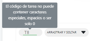 3. También puede cambiar el código de la tarea (pregunta) utilizando el campo redondeado junto a la lista de tareas. El código de una tarea es importante para identificar la pregunta en la base de datos y también para ver las respuestas en la plataforma. OW Voices siempre colocará la pantalla "T" seguida de un número natural en orden ascendente para los códigos de tarea.