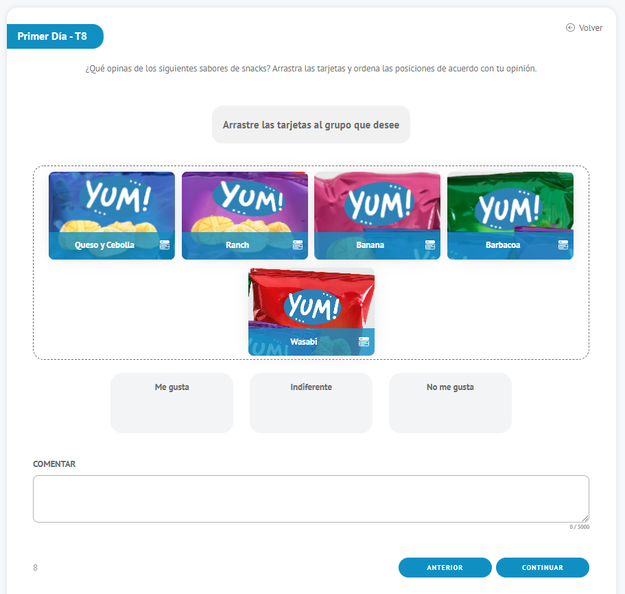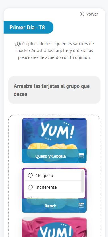 Este es un ejemplo de cómo se visualiza este tipo de tarea para los participantes.