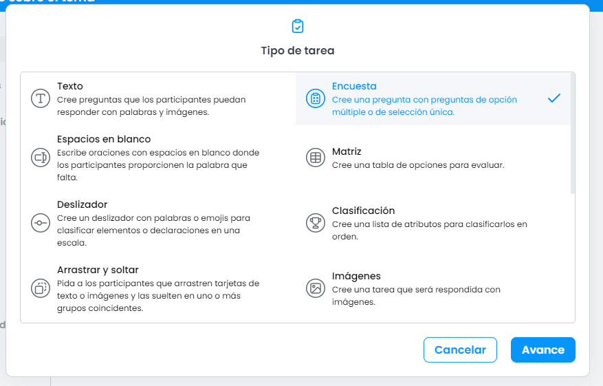 La investigación es un tipo de tarea que presenta al participante una lista de opciones predefinidas entre las cuales se le solicita seleccionar una (elección única) o más respuestas (elección múltiple).