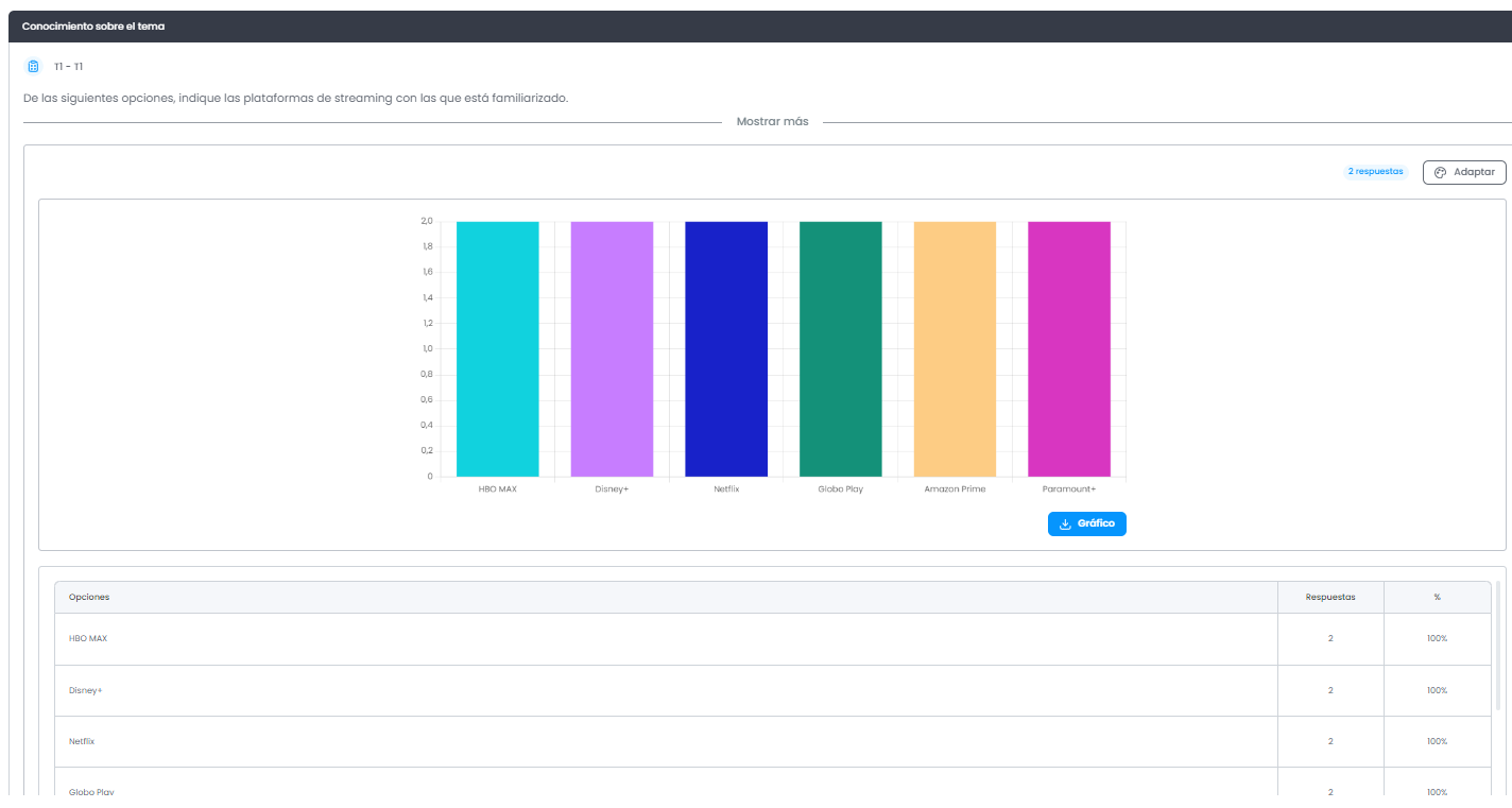 La tabla ubicada debajo del gráfico mostrará las respuestas en números absolutos y en porcentajes.