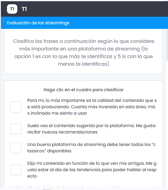 Este es un ejemplo de cómo se visualiza este tipo de tarea para los participantes.