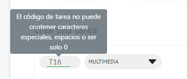 3. También puedes cambiar el código de la tarea (pregunta) utilizando el campo redondeado al lado de la lista de tareas. El código de una tarea es importante para identificar la pregunta en la base de datos y también en la visualización de las respuestas en la plataforma. Ow Voices siempre colocará la pantalla "T" seguida de un número natural en orden creciente para los códigos de las tareas.