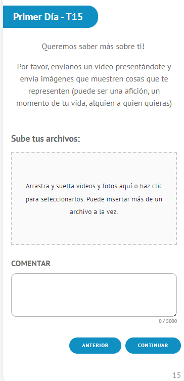 Multimedia es un tipo de tarea en la que los participantes deben compartir imágenes y/o videos con la comunidad. En general, estas fotos/grabaciones están directamente relacionadas con un tema de interés para la comunidad (por ejemplo, 'lo que almorzaron', 'dónde van a almorzar', etc.). Permitimos que los encuestados suban hasta 5 imágenes y/o videos en una sola tarea.