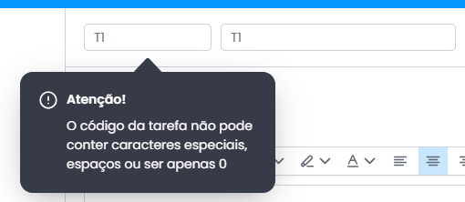 3. Você poderá também alterar o código da tarefa (pergunta) utilizando o campo arredondado ao lado da lista de tarefas. O código de uma tarefa é importante para a identificação da pergunta na base de dados e também na visualização das respostas na plataforma. A Ow Voices irá sempre colocar a tela "T" seguida de um número natural em ordem crescente para os códigos das tarefas.