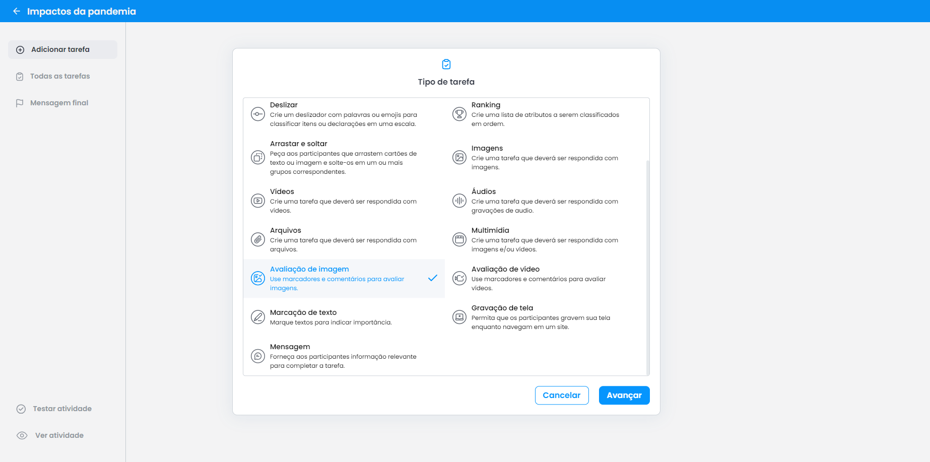 Este é um exemplo de como é a visualização desse tipo de tarefa para os participantes.